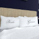 A romantic swirly font used on this pair of wedding night pillowcases. You can change the text to the names of the Bride and Groom so they'll know which side of the bed belongs to them.