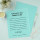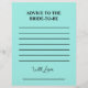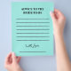 Capture heartfelt wishes and timeless wisdom with our Elegant Bridal Shower Teal “Advice to the Bride” Note Template. Perfect for bridal showers, this customizable template lets guests share their advice, encouragement, and best wishes for the bride-to-be. A thoughtful and interactive keepsake, these notes create lasting memories that the bride can treasure for years to come. Beautifully designed in a sophisticated teal color, this template complements any bridal shower theme while adding a personal touch to the celebration.