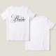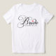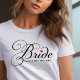 Classic and refined, this white tee features "Bride" in elegant black flourished calligraphy with a red heart accent. "Future Mrs." with a customizable last name sits below for a personalized monogram keepsake. A timeless choice for bridal showers, engagement parties, bachelorette weekends, and everyday bride-to-be wear. Customize the last name to celebrate your new title.