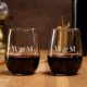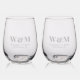 Elegant Bride Groom Monogram Initials Wedding Stemless Wine Glass