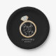 Celebrate the bride-to-be with these beautiful, modern, stylish bridal shower paper plates. Featuring a simple and beautiful gold engagement ring with white lettering on black background. Matching items in our store Cava Party Design.