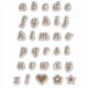 Elegant bronze color script font typography letters alphabet sticker pack for monogramming, personalizing, customizing, note writing, journals, notebooks, and more. This set also includes an exclamation point, heart, flower, and star.