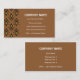 A more formal business card with a pattern of 'fleur-de-lys' in black and chocolate brown on a coffee brown background, with white lettering. Ready for you to customize with your own details.