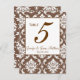 Elegant Brown Damask Wedding Table Number