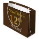Elegant, Brown, Faux Gold 12th Birthday + Name Large Gift Bag