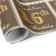 This simple and elegant wrapping paper design features a personalized message like "FirstName’s 16th Birthday" (with the "16th" having a faux/imitation gold-like coloring look) within a brown-colored square area featuring a simple border outline. The name is in an elegant white-colored script-like text, and can be customized. Wrapping paper like this could perhaps be used when wrapping birthday gifts for somebody who is celebrating their sixteenth birthday. [~Z0000223]
