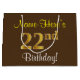 Elegant, Brown, Faux Gold 22nd Birthday + Name Large Gift Bag