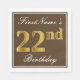 This simple and elegant paper napkin design features a message like "FirstName’s 22nd Birthday" (with the "22nd" having a faux gold-like coloring) within a brown-colored square area featuring a simple border outline. The name is in a white-colored script-like text, and can be customized. Napkins like these could perhaps be used at a birthday party for somebody who is celebrating their twenty second birthday. [~Z0000139]