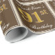 This simple and elegant wrapping paper design features a personalized message like "FirstName’s 91st Birthday" (with the "91st" having a faux/imitation gold-like coloring look) within a brown-colored square area featuring a simple border outline. The name is in an elegant white-colored script-like text, and can be personalized. Wrapping paper like this could perhaps be used when wrapping birthday gifts for somebody who is celebrating their ninety first birthday. [~Z0000223]