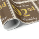 This simple and elegant wrapping paper design features a personalized message like "FirstName’s 92nd Birthday" (with the "92nd" having a faux/imitation gold-like coloring look) within a brown-colored square area featuring a simple border outline. The name is in an elegant white-colored script-like text, and can be personalized. Wrapping paper like this could perhaps be used when wrapping birthday gifts for somebody who is celebrating their ninety second birthday. [~Z0000223]