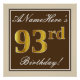 Elegant, Brown, Faux Gold 93rd Birthday + Name Poster
