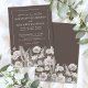 Plain white envelopes are included with paper invitations and will come to fit the invitation size you select. If you don’t need the envelopes, you may choose to not receive them by selecting the dropdown below "Envelopes" and choosing "None." If you’d like to have a design on your envelopes, you can browse all of these available envelopes to find the design that complements your Elegant Brown Floral Boho Wedding Invitation.