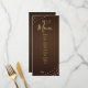 Display your wedding feast in style with this elegant long wedding menu card. Featuring delicate golden fairy lights over a rich chocolate brown background, this design includes a modern monogram and clear sections for starters, mains, salads, and desserts. Perfect for rustic barn weddings, country chic receptions, or outdoor starlit dinners.