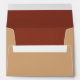 This wedding envelope features a clean, minimalist design with centered text on a plain background. The muted brownish-red color palette creates a subtle and sophisticated look, while the serif font adds elegance and clarity. Perfect for formal correspondence or invitations, this design emphasizes simplicity and readability, making it ideal for couples seeking a refined and understated aesthetic.