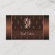 Make a lasting impression with this elegant business card design featuring shimmery brown gradient borders and monogram pattern on a dark brown background.