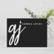 Elegant Brush Script White Monogram Black Note Card