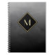 Make a statement with this elegant and stylish black and gold monogram notebook. This simple and sophisticated brushed gradient design with a modern diamond shaped frame can be personalized by adding your monogrammed initial. Flat printed image, NOT metallic.