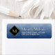 Capture attention with these elegant and stylish blue and black monogram return address labels. This simple and sophisticated brushed gradient design with a modern diamond shaped frame with a gold border can be personalized by adding your monogrammed initial. Flat printed image, NOT metallic.