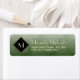 Show off your inner class with these elegant and stylish green and black monogram return address labels. This simple and sophisticated brushed gradient design with a modern diamond shaped frame with a gold border can be personalized by adding your monogrammed initial. Flat printed image, NOT metallic.
