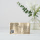 An elegant business card featuring a faux brushed pearl foil background, black text, and a QR code.