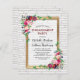 Budget vintage chic engagement party invitations featuring a rustic white Château brick wall, classical gold frame, an autumn fall watercolor floral display in pinks and burgundy, and a celebration text template. Click on the “personalize” button for further customization of this template.