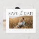 An Elegant Budget Photo Wedding Save the Date with modern script type and simple layout on the front. The back has an additional photo and details. Click the edit button to customize this design.