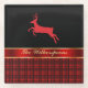 Elegant Buffalo Plaid with Reindeer and Red Ribbon Glass Coaster
