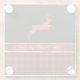 This festive town and country design features a rustic red and black plaid, almost like a buffalo plaid, offset with a fancy red and gold ribbon. At the top, a red reindeer is leaping in anticipation of Christmas eve. This mixture of two looks is a bit elegant but cozy at the same time. Your name or message of your choice appears above the ribbon in gold against a black background.