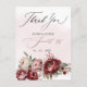 Elegant Burgundy Blush Floral Sweet 16 Thank You Card