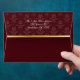 Lovely wedding invitation envelope done in a rich dark burgundy and antique Merlot Damask, on the back flap and inside. Graphics of a golden band decorates the edge of the flap. Personalize the white text, on the back flap to suit your needs. Lovely finishing touch to our Elegant Burgundy Damask Wedding Invitation.