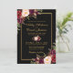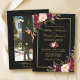 Elegant Burgundy Floral Black Gold Photo Wedding Invitation