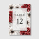Elegant Burgundy Floral Wedding Table Number.