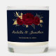 Elegant burgundy flowers gold navy blue scented candle