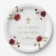 Elegant Burgundy Gold Flowers He Is Risen Easter Paper Plates