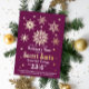 This elegant Christmas invitation for a Secret Santa party features a sleek, minimalist design adorned with geometric gold-foil snowflakes and charming retro-style typography ogainst a rich burnt burgundy background.