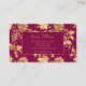 Exude sophistication with this regal business card featuring a rich burgundy background adorned with ornate gold floral detailing. The classic rectangular center panel frames your name and title in an elegant script, while the reverse side includes all your contact information with matching flair. Perfect for wedding planners, event professionals, or luxury service providers, this two-sided card combines timeless beauty with a professional finish for a truly memorable first impression.