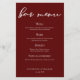 Elegant Burgundy Minimalist Wedding Bar Menu
