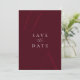 Modern burgundy wedding save the date cards featuring bold monogram typography and minimalist design.