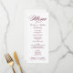 Elegant and formal wedding dinner menu cards feature a stylish script and scroll details with a vintage inspired design. Burgundy wine red and white colors. Personalize the custom monogram with the bride and groom names, event date, and menu details. Text and background color can be modified to coordinate with your wedding color scheme.
