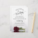 These wedding programs are elegant and tasteful, while still being budget friendly. The design features a single long-stemmed burgundy, maroon, or wine red colored rose lying on its side, reflecting in a pool of water with waves and ripples. The typography features lacy black script calligraphy, and there is room for details on the ceremony, the bridal party, and a short thank you.