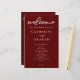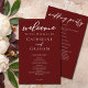 This solid burgundy wedding program features classic white script for a bride and groom getting married at a formal evening venue. Embrace romance with this rich, bold color. Minimalist and romantic typography programs for a modern couple.