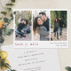 This simple, stylish modern three photo wedding save the date flat card template features your photos and 'SAVE the DATE' highlighted in an elegant shade of burgundy(color 800020) and conveyed with a striking blend of two distinct fonts, with 'and' in a light, flowing script between the other two words, which are in upper case with a bold, crisp formal look. This element of the design is an image and can't be altered. But you might choose to change the font, punctuation or color used for the other text on the front and/or back. For example, you might choose to give a certain color to your names and/or date text. on the front Or you might choose to delete something or change a text field entirely with a different message. The default color for your names and date on the front are a slightly softened black. On the back we chose an atypical order for the information, putting the 'please save the date' text after the 'for the wedding of' text, which lends a path less traveled charm to it. You can easily alter this order or change anything else to suit your needs. On back, we've picked a tone called White Smoke that's a very light gray, with mostly white in it. You can easily change this by either picking one of the basic colors in the editing tools or entering a color number if you have a specific hue in mind that you found in your research, or by looking at the color spectrum tool and choosing something by sight. The default text tone on back is a very dark gray that's mostly black, but you can edit this in favor of another text color, and you can also change any of the font. Use the intuitive editing and design tools, your favorite photos and your inspiration to make this simply chic custom multi photo collage wedding save the date card uniquely yours!