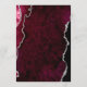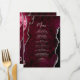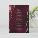 This elegant modern wedding menu features a burgundy red watercolor agate background trimmed with faux silver glitter. The customizable text combines silver gray handwriting script and copperplate fonts. The reverse side features a matching burgundy and silver agate design.