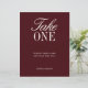 Elegant Burgundy Take One Wedding Favor Sign