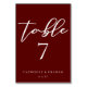 Elegant Burgundy Typography Evening Wedding Table Number