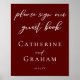 This personalized solid burgundy wedding PLEASE SIGN OUR GUEST BOOK poster features classic white script for a couple getting married in the evening. Celebrate your love with this romantic rich red color and coordinate with our custom minimalist typography collection.