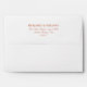 Elegant burnt orange lined wedding envelopes personalized with a return address in a classic serif font. Handwrite our guest address or click the button to edit the design to pre-address it online.