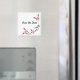 It was a bit smaller than expected, but I was too excited to check dimensions. The product itself send well printed though the grey text is a bit paint. Magnet worked perfectly on my fridge.