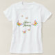 This beautiful women's shirt features a design of colorful butterflies gracefully flying. The center showcases the message "Nature's Harmony," evoking a sense of connection with nature. The vibrant butterflies come in shades of pink, yellow, blue, and purple, drawing the eye. The hand-drawn font adds warmth to the design. This shirt is perfect for those who love nature and enjoy colorful designs.