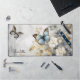 Elegant Butterfly Floral Personalized Name Desk Mat features blue butterflies with white, blue and gold flowers on an abstract background and personalized with your name in modern calligraphy script typography. Perfect as a gift for her and family and friends for birthday, Christmas, holidays, Mother's Day, sister, wife, partner, best friends, work colleagues and more. Designed by ©Evco Studio www.zazzle.com/store/evcostudio